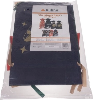 Descoperă o modalitate simplă și stilată de a ambala cadourile. Acești săculeți de Crăciun din material nețesut sunt rezistenți, ușori și reutilizabili, potrivindu-se perfect abordării zero waste. Partea frontală este decorată cu motive de reni, clopoței, ilex și steluțe în alb sau auriu.