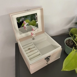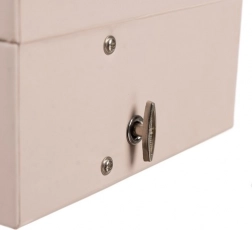 Oglindă mare în capac pentru a proba ușor bijuteriile și o clapetă metalică ce păstrează comorile în siguranță chiar și în călătorii.