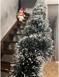 Ghirlanda este realizată din PE de calitate, ceea ce o face ușoară, rezistentă și neabsorbantă. Sârma internă moale și flexibilă permite modelarea ușoară în arcade, bucle sau linii precise fără rupere. Contrastul verde‑alb, odată ce luminițele sunt aprinse, oferă o strălucire magică și caldă și subliniază atmosfera festivă.