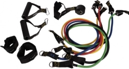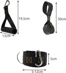 Ancora pentru ușă, mânerele și chingile pentru glezne extind posibilitățile de antrenament. Este inclus și un săculeț practic pentru transport facil.