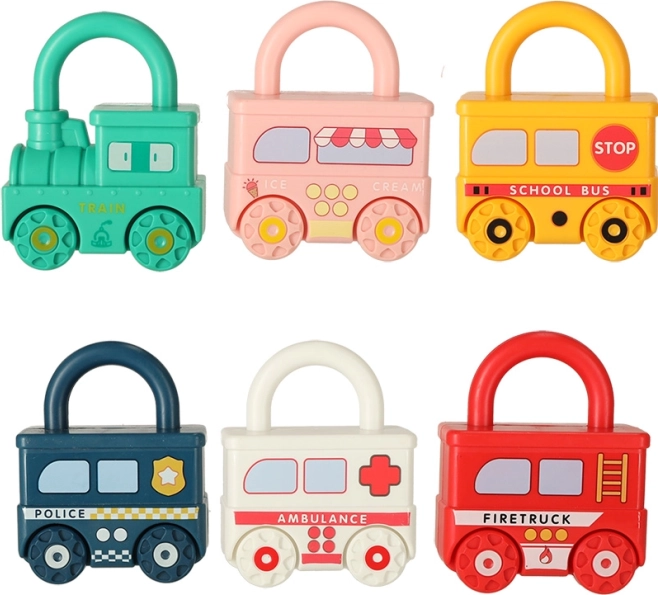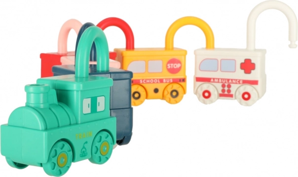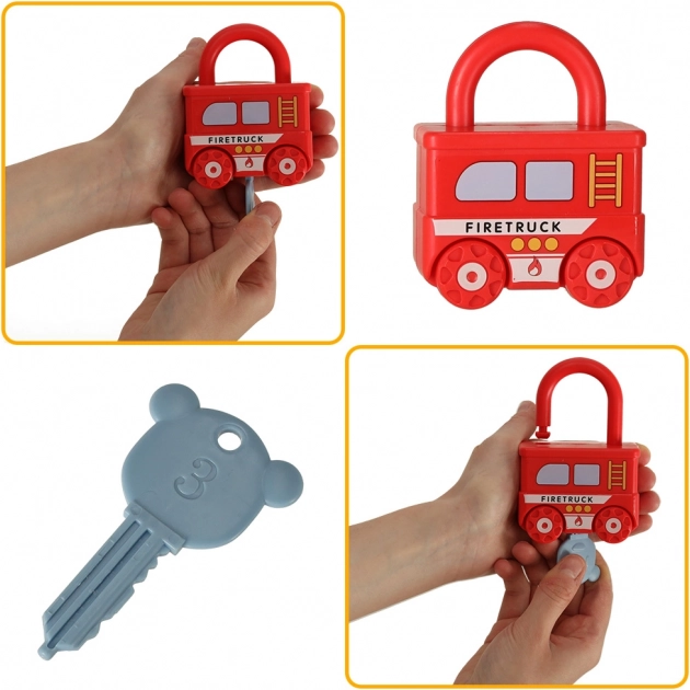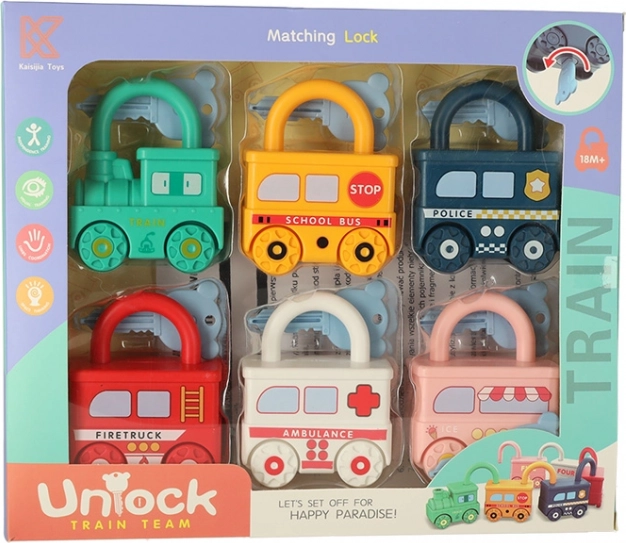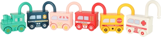 Set educativ jucăuș pentru cei mai mici, care îmbină distracția și învățarea într-un singur produs. Copiii de la 18 luni își exersează motricitatea fină deschizând vehiculele colorate cu chei și învață să distingă culorile și numerele. Setul conține 6 vehicule – locomotivă, autobuz școlar, mașină de poliție, pompieri, ambulanță și camion de înghețată – și 7 chei, inclusiv una universală. După deschidere, vehiculele pot fi unite într-un trenuleț pentru și mai multă joacă creativă. Construcția sigură din plastic fără muchii ascuțite și culorile vii asigură ore întregi de distracție valoroasă.
