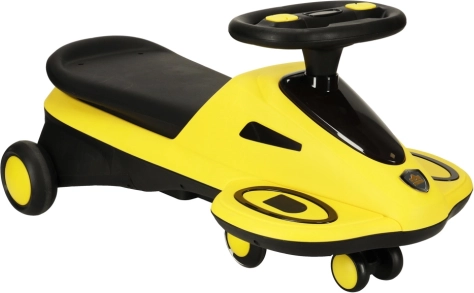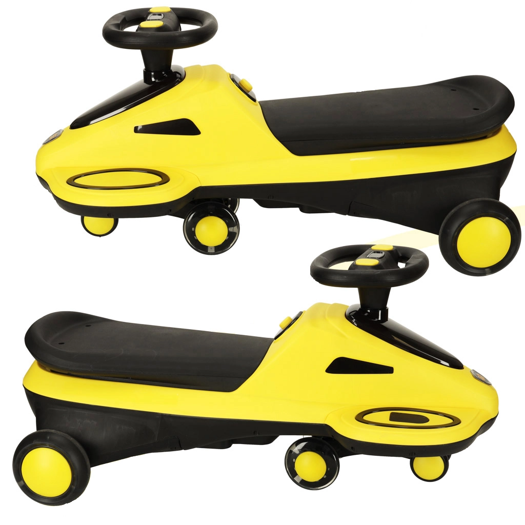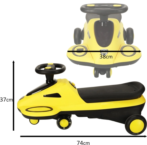 Vehicul modern de împins gravitațional pentru copii de la 3 ani, cu capacitate de până la 100 kg, impresionează prin roți LED luminoase, muzică integrată și o construcție stabilă. Deplasarea înainte se realizează printr-o simplă balansare a volanului stânga-dreapta – fără acumulator. Suprafețele antiderapante și roțile din spate amplasate larg oferă siguranță și stabilitate.