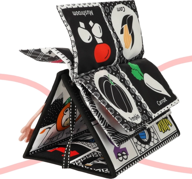 Proiectată cu culori și texturi puternice, care stimulează percepția vizuală și tactilă a bebelușului. Elemente foșnitoare atrag atenția și ajută la dezvoltarea abilităților auditive.