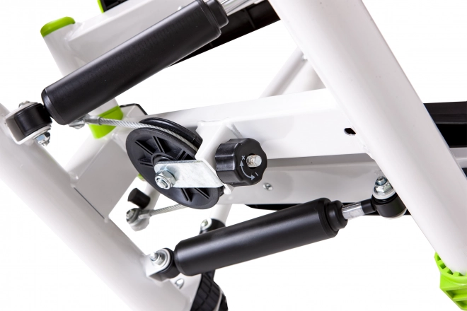 Începeți un antrenament eficient acasă cu stepperul twist, care simulează urcatul scărilor și, datorită mișcării circulare, modelează simultan coapsele, fesierii și zona centrală. Sistemul twist implică partea internă și externă a coapselor, în timp ce pasul vertical întărește mușchii fesieri. Cu benzi de rezistență lucrați suplimentar brațele, umerii și pieptul.