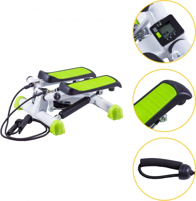 Ecranul LCD integrat monitorizează indicatorii cheie – timpul, pașii pe minut, numărul total de pași și caloriile arse. Datorită reglării rezistenței ajustați ușor intensitatea în funcție de obiective, iar treptele antiderapante oferă siguranță la antrenamente dinamice.
