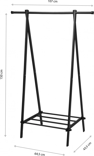 Înălțimea de 150 cm și lățimea barei de 107 cm oferă suficient spațiu pentru haine, în timp ce baza compactă economisește spațiu.