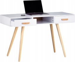 Descoperiți o masă elegantă și funcțională, ideală pentru biroul de acasă, dormitor sau living. Combinația dintre blatul alb și picioarele naturale din pin oferă un aspect scandinav curat, ușor de integrat în interioare moderne sau clasice. Datorită spațiului de depozitare bine gândit, veți avea totul la îndemână, iar suprafața de lucru va rămâne ordonată.