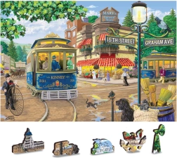 Acest puzzle premium din lemn prezintă o scenă plină de viață cu un tramvai retro și o străduță bogată în detalii de epocă. Datorită pieselor tăiate cu laser cu margini netede, asamblarea este atât o plăcere, cât și o provocare. Versiunea cu două fețe permite asamblarea pe față după motiv sau pe spate după modelul repetitiv.