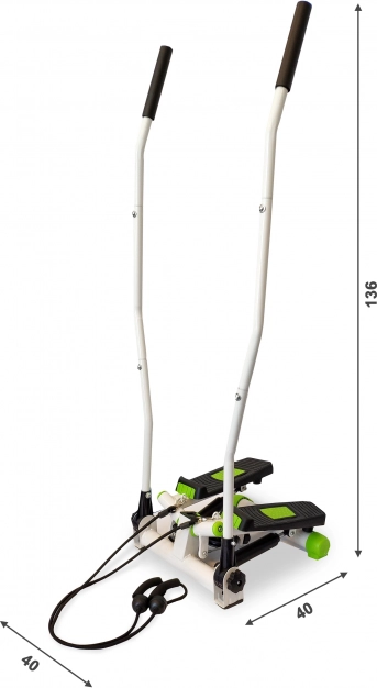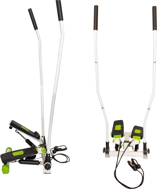 Acest stepper este conceput pentru a oferi antrenament universal care modelează atât partea inferioară cât și cea superioară a corpului. Este echipat cu două genuflexiuni și benzi de rezistență, permițând o gamă largă de mișcări pentru antrenarea mușchilor picioarelor, mâinilor, pieptului și umerilor.