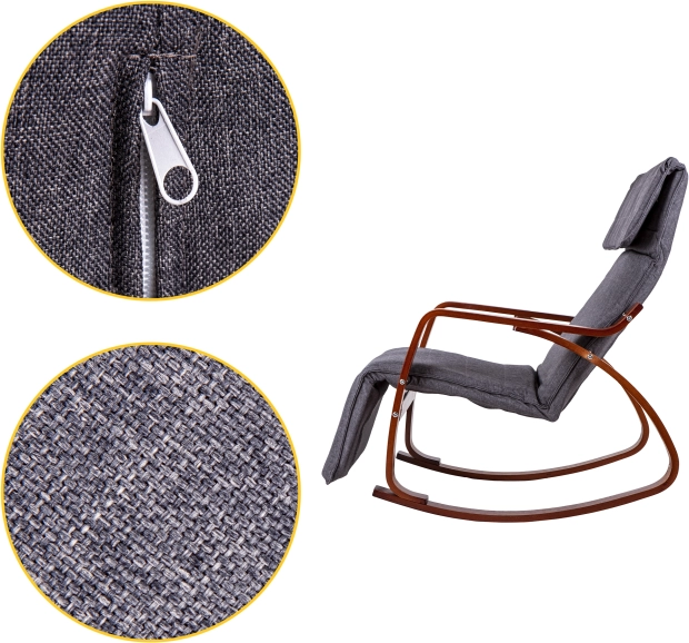 Scaunul este fabricat din materiale de calitate, care sunt durabile și ecologice. Are un suport de picioare reglabil în 5 trepte, care sporește confortul și posibilitățile de relaxare.