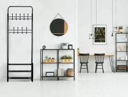 Oferă 18 cârlige și 3 etajere pentru o organizare extrem de eficientă a hainelor și încălțămintei.