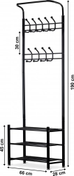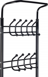 Acest suport funcțional pentru haine este echipat în partea superioară cu două rânduri de 18 cârlige, ceea ce îl face ideal pentru dressingurile casnice, birouri sau săli de așteptare.