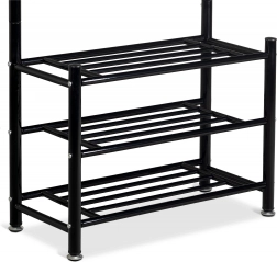 În partea inferioară a suportului veți găsi trei etajere funcționale, pe care puteți depozita haine de dimensiuni mai mici, genți și chiar și pantofi. Construcția stabilă pe 4 picioare asigură stabilitate chiar și în cazul încărcăturii mari.