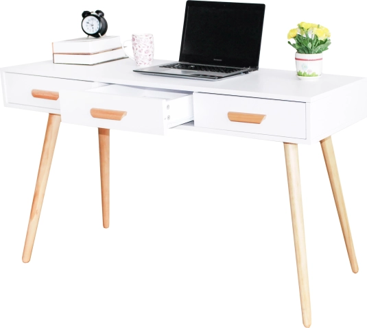 Designerii s-au asigurat că totul are un loc bine definit. Biroul este echipat cu trei sertare spațioase, care permit organizarea accesoriilor de birou, a produselor de machiaj sau a micilor accesorii utile în camera de zi.
