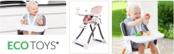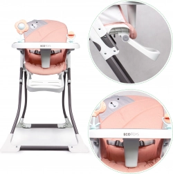 Marginile înălțate ale tăvii asigură că nimic nu se varsă pe podea. În plus, tava este formată din două părți, dintre care prima este pentru mâncare, iar a doua pentru joacă.