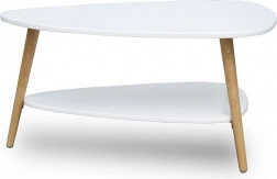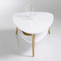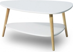 Masa pentru conferințe oferă un blat alb cu picioare din lemn și un raft inferior pentru un spațiu de depozitare mai mare.