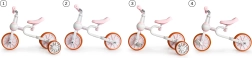 Șaua ajustabilă și pedalele/două roți laterale detașabile permit personalizarea pentru a se potrivi copiilor, pentru ca aceștia să poată crește odată cu bicicleta.