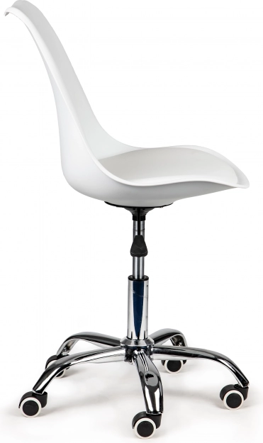 Scaun de birou modern alb și albastru cu bază cromată