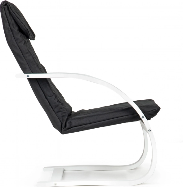 Mișcarea ușoară de legănare relaxează tensiunea musculară, iar spătarul susține coloana. Ideal pentru relaxare, citit și odihnă după muncă.