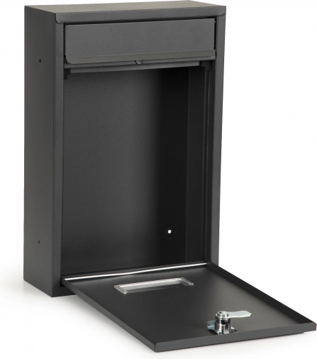 Cutia este realizată din oțel galvanizat, oferind protecție completă împotriva coroziunii. Partea de jos a cutiei are un loc special pentru ziare și pliante, separând corespondența de materialele publicitare.