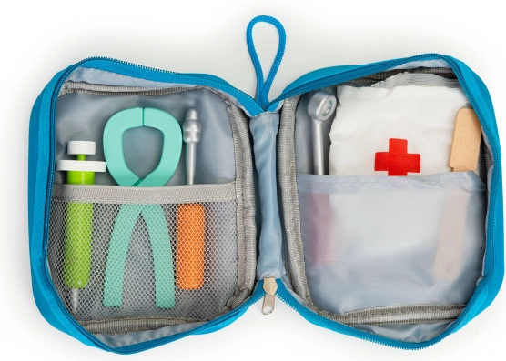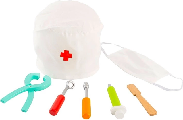 Setul de dinți pentru copii este o modalitate excelentă de a-i ține ocupați ore întregi. Conține în total 7 instrumente diferite, inclusiv o bonetă chirurgicală, mască și alte instrumente stomatologice care îi încurajează pe copii să imite un adevărat medic dentist. Această jucărie sprijină și o bună îngrijire orală și poate ajuta la reducerea fricii de vizita la dentist.