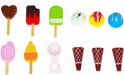 Magnetii inteligenți prind biluțele de înghețată de cornet și de linguriță, astfel încât luarea și servirea par realiste. Setul include o selecție variată de înghețate pe băț și biluțe pentru cornet, pe care copiii le pot combina după poftă.