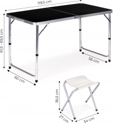 Setul nostru de camping pliabil asigură soluția ideală pentru activitățile exterioare. Cu o construcție stabilă și înălțime reglabilă a mesei, este perfect pentru mesele în familie, pregătirea bucatelor sau jocurile de seară. Datorită designului compact, este ușor de transportat.