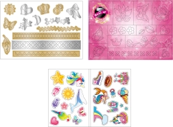 Pur și simplu aplicați șablonul și cu ajutorul unui lipici special aplicați sclipici. Siguranța și distracția sunt garantate.