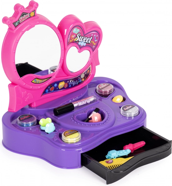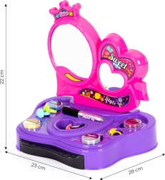 Masa de toaletă va aduce multă bucurie tuturor fetelor care iubesc să se joace și să își pregătească machiajul. Datorită accesoriilor, distracția va fi interminabilă, iar crearea de tatuaje sclipitoare te va ține ocupat ore întregi.