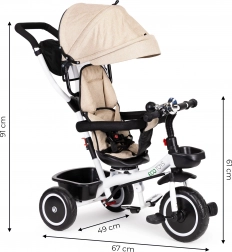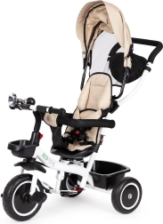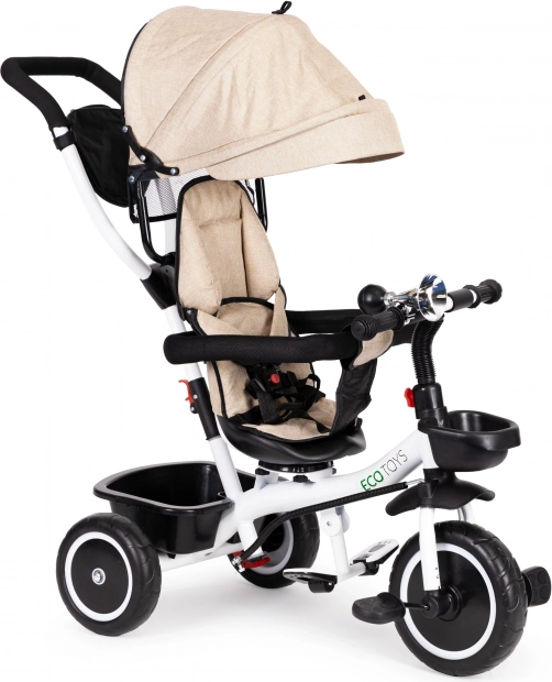 Tricicleta marca ECOTOYS combină multe elemente practice care asigură copilului tău o distracție sigură. Suportul moale permite șederea confortabilă, iar centurile de siguranță împreună cu barierele protectoare protejează copilul de cădere. Copertina rabatabilă protejează de ploaie și soare, în timp ce cadrul special conceput și scaunul rotativ facilitează urcarea pentru cei mai mici copii.