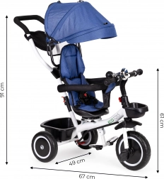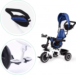 O caracteristică excelentă a acestei triciclete este stabilitatea și durabilitatea datorită roților din material EVA. Roțile din spate sunt echipate cu o frână de urgență pentru siguranță sporită. Părinții pot controla comod mersul datorită mânerului de ghidare.