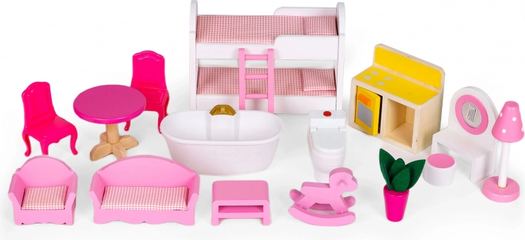 Căsuța pentru păpuși ECOTOYS își datorează farmecul culorilor bine alese și încăperilor proiectate special. Datorită acestora, reședința arată grozav nu doar în camera copilului , ci și în sufragerie , stârnind admirația tuturor membrilor familiei.