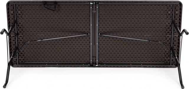 Mecanismul ingenios vă permite să pliați masa într-o valiză compactă în aproximativ 20 de secunde. În stare pliată are 90 × 70 × 8,6 cm, iar datorită mânerului integrat se transportă și se depozitează ușor – ideală pentru catering, petreceri în grădină, camping și picnicuri în familie.