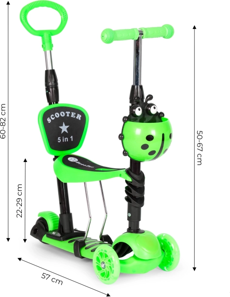 Copiii vor adora plimbarea la amurg, deoarece roțile trotinetei strălucesc frumos datorită diodelor integrate în interior. Luminile colorate cresc vizibilitatea și aduc siguranță suplimentară.