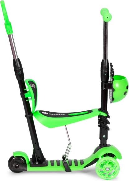 Trotineta are mâner pentru împingerea de către adulți, care poate fi reglat pe înălțime (74-86 cm). Ideal pentru plimbările cu cei mai mici copii.