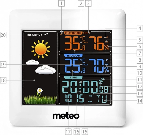 Vă prezentăm o stație meteorologică modernă care vă oferă date detaliate despre climatul din jurul dumneavoastră. Datorită senzorului wireless, puteți monitoriza temperatura și umiditatea atât în interior, cât și în exterior.