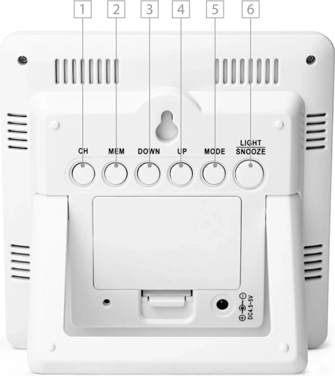 Stație meteorologică cu senzor exterior. Oferă funcții de măsurare a temperaturii și umidității, cu ceas sincronizat cu ceasurile atomice din Frankfurt.