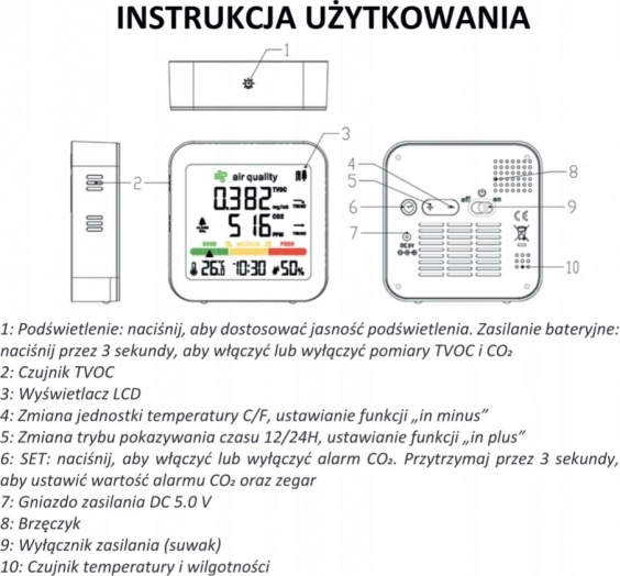 Acest dispozitiv poate măsura simultan temperatura interioară, umiditatea, nivelul TVOC și concentrația de CO2, oferindu-vă o imagine cuprinzătoare a calității aerului.