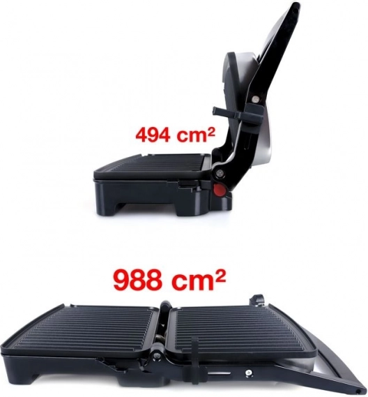 - 2 în 1: grătar de contact + grătar plan (deschidere 180°)