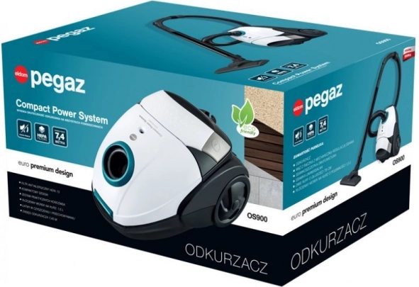 Aspiratorul compact cu sac ELDOM Pegaz oferă putere de 700 W, filtru HEPA H13 pentru alergici și raza de lucru de 7,4 m. Este mic și ușor de depozitat, cu înfașurare automată a cablului, posibilitate de parcare verticală și orizontală și folosirea atât a sacului textil de 1,5 l, cât și a sacilor de unică folosință.