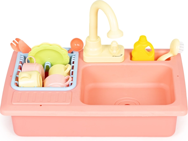 Copiii adoră să imite adulții, și activitățile zilnice devin adesea tema principală a jocului lor. Această jucărie stimulează coordonarea mână-ochi și dezvoltă obiceiuri bune. Pentru siguranța lor, chiuveta este construită fără margini ascuțite și componente periculoase.