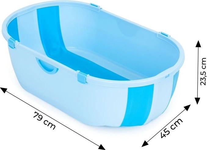 Marginea întărită, clemele de siguranță și mânerele laterale asigură fixare fermă și prindere sigură la manipulare și în timpul băii.