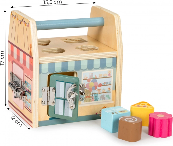 Această jucărie din lemn unică combină distracția cu învățarea. Este potrivită pentru copiii peste 3 ani și ajută la dezvoltarea abilităților manuale. Copiii se vor bucura de multă distracție în timp ce își îmbunătățesc abilitățile cognitive și motorii jucându-se cu cubul.