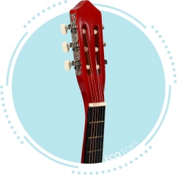 Chitara ECOTOYS oferă un design tradițional cu accent pe estetică și manevrabilitate ușoară pentru copii de la trei ani.
