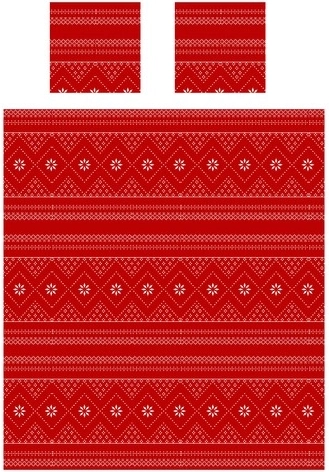 Înfășurați-vă în confort cu acest set roșu de iarnă: o pătură moale din microfleece și două fețe de pernă cu model nordic alb. Datorită microfibrei fine, pătura este foarte ușoară, călduroasă și catifelată, ideală pentru relaxare de toamnă și iarnă pe canapea sau în dormitor. Modelul expresiv conferă interiorului o atmosferă festivă și servește și drept decorațiune stilată sau cadou grozav.