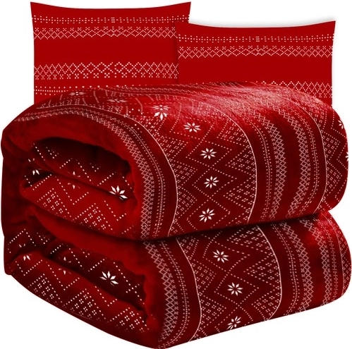 Creați un colț primitor acasă cu pătura roșie și cele două fețe de pernă cu motiv de iarnă. Microfleece-ul din fibră de poliester este plăcut la atingere, încălzește rapid și, în același timp, este respirabil și ușor de întreținut. Setul este potrivit pentru utilizare zilnică, stat la film sau citit.