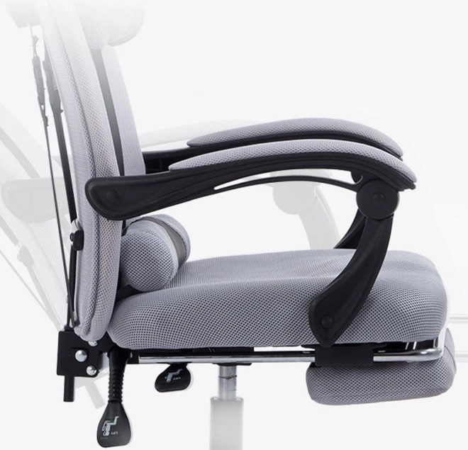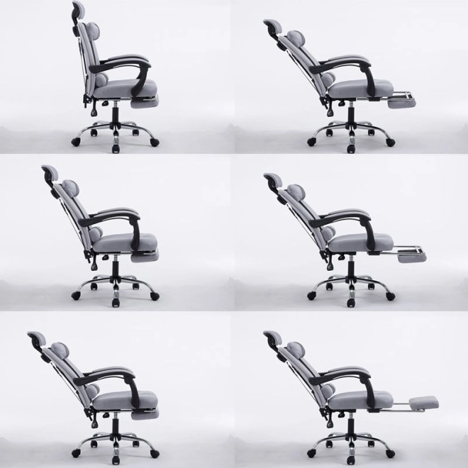 Scaun rotativ modern cu suport pentru picioare și tetieră, ideal pentru birou, biroul executiv sau camera unui student. Bucură-te de confort la lucru datorită materialului moale și plăcut. Designul ergonomic susține spatele și ușurează orele lungi de lucru.