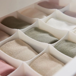 Sertare cu compartimente pentru șosete și chiloți și inserție specială pentru sutiene mențin totul perfect ordonat, fără șifonare.
