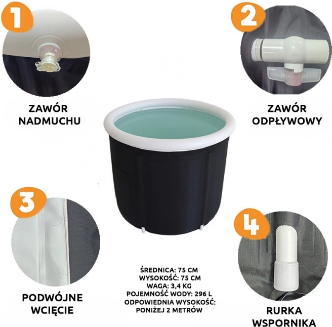 Bucură-te de regenerare eficientă și de terapie cu frig oriunde și oricând cu cada portabilă Balia Walrus. Datorită construcției rezistente, pregătirii rapide și volumului de 296 l, este ideală pentru băi reci acasă, recuperare sportivă și ritualuri de wellness. Întărește imunitatea, sprijină circulația sanguină și oferă răcire rapidă după efort – pur și simplu se umflă, se umple și te scufunzi în baia de gheață.