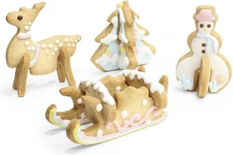 Cu acest set universal vei pregăti biscuiți 3D de Crăciun spectaculoși, care stau singuri în picioare și decorează orice masă festivă. Formele sunt realizate din oțel inoxidabil, fiind rezistente, ușor de curățat și potrivite chiar și pentru aluat rece fără a rupe marginile.
